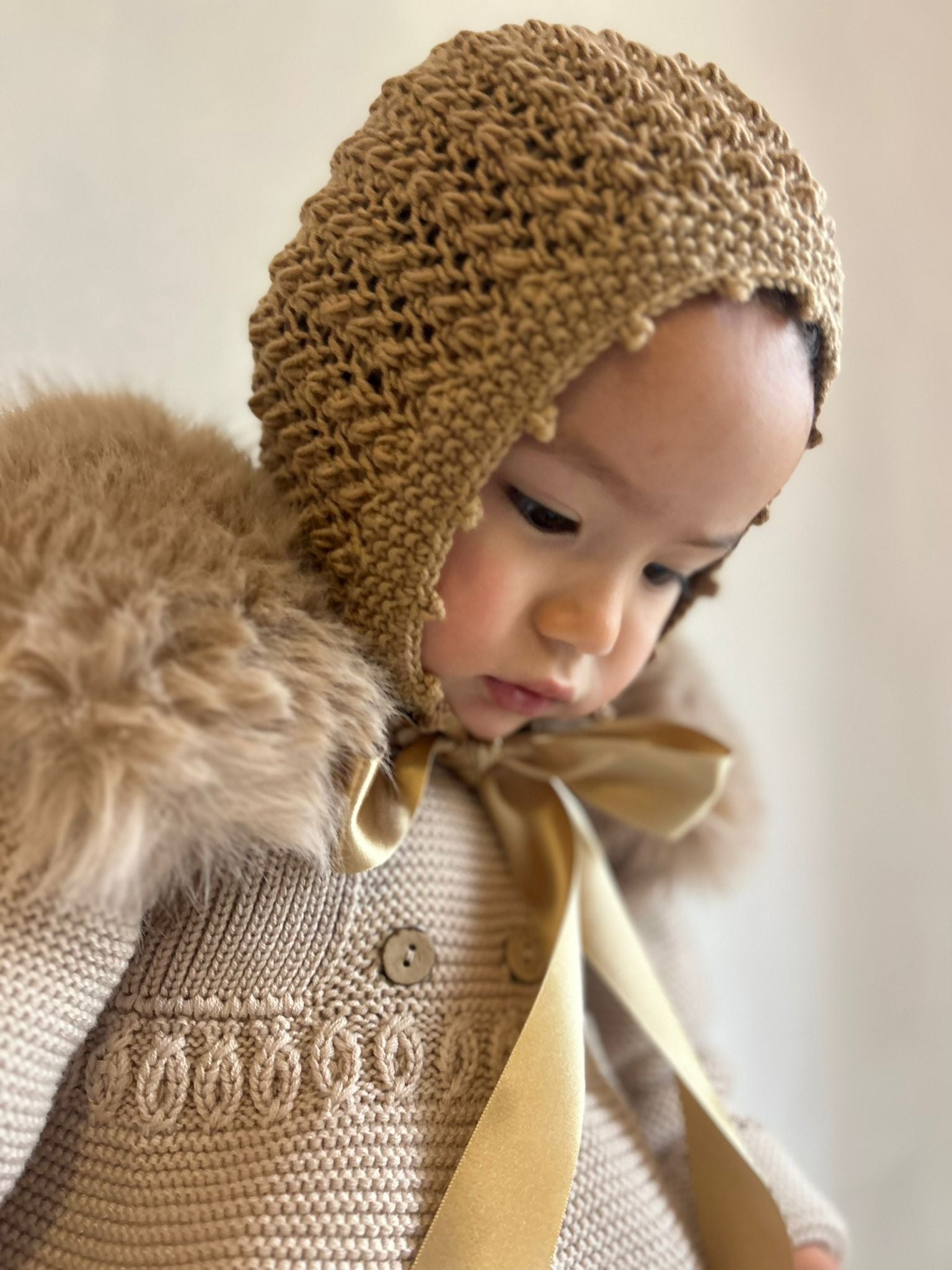 The Vintage Valencia Bonnet is a truly one-of-a-kind piece, designed and hand-knitted by me, not based on any pattern and never reproduced. Carefully crafted using 100% merino wool, this bonnet is incredibly soft, breathable, and perfectly suited for babies with extra sensitive skin. Merino wool is also ethical and sustainable, making it a thoughtful choice for your little one and the planet.