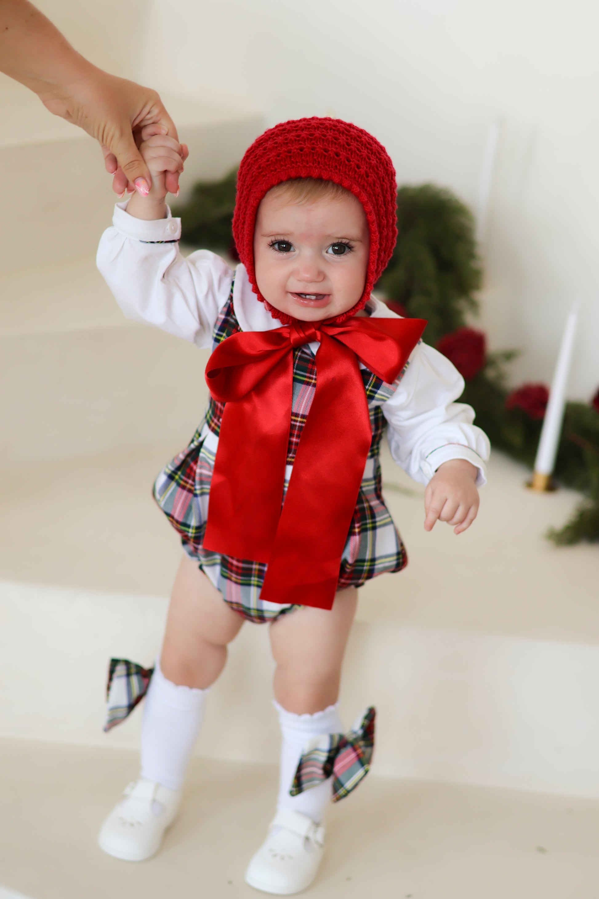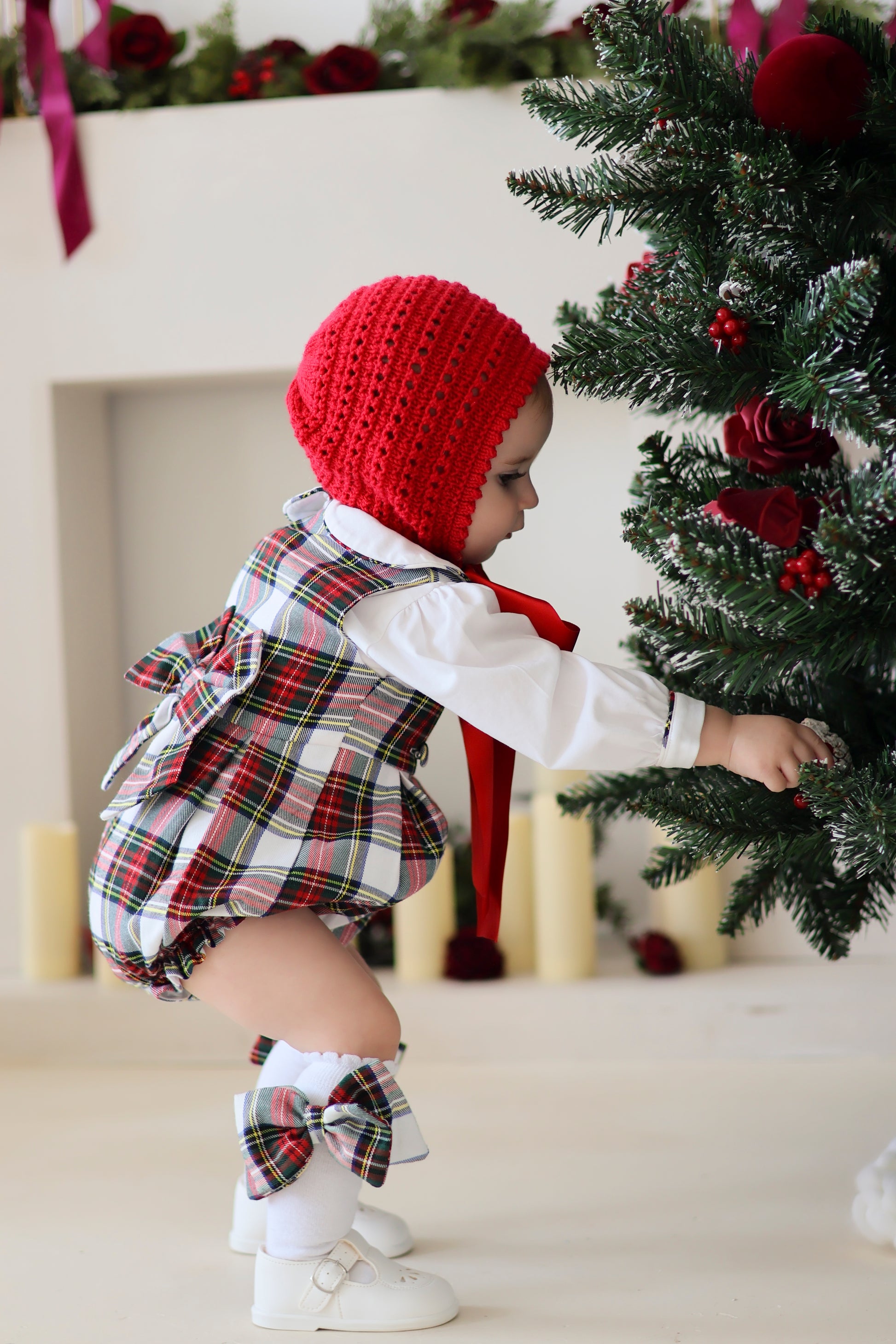 Perfect for Christmas photos, festive outings, or as a thoughtful holiday gift, this bonnet brings a timeless vintage charm to your little one’s winter wardrobe.